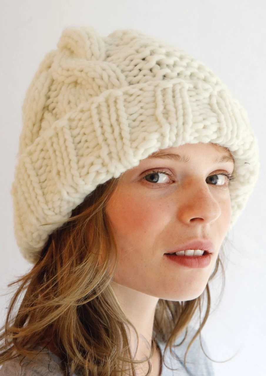 Plakative XXL-Maschen hüpfen dir mit dem voluminösen, ungezwirnten Garn HUSKY schnell und einfach von den Nadeln. So wird aus der coolen Mütze ein Wochenendprojekt, das dich warm durch den Winter bringt.