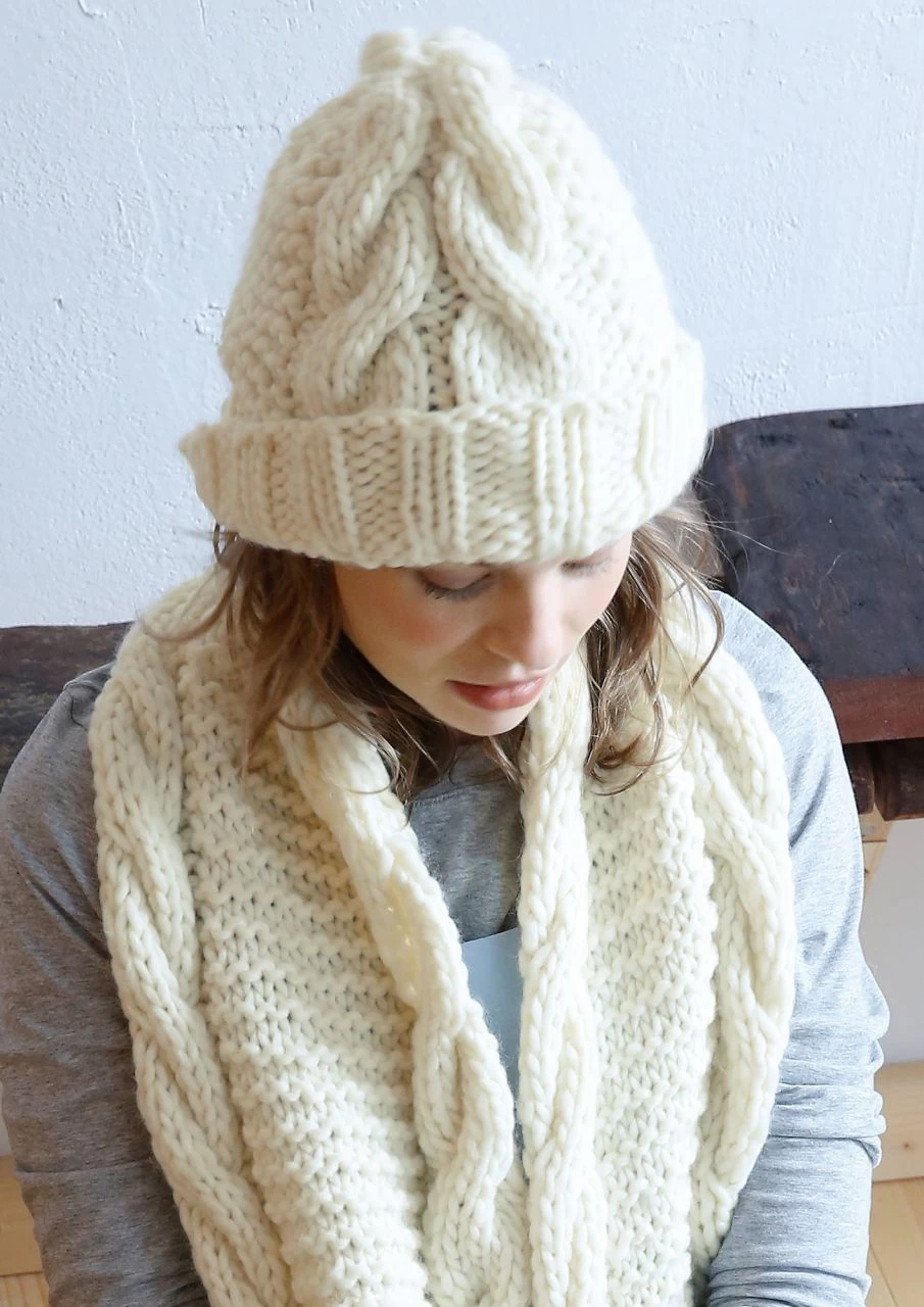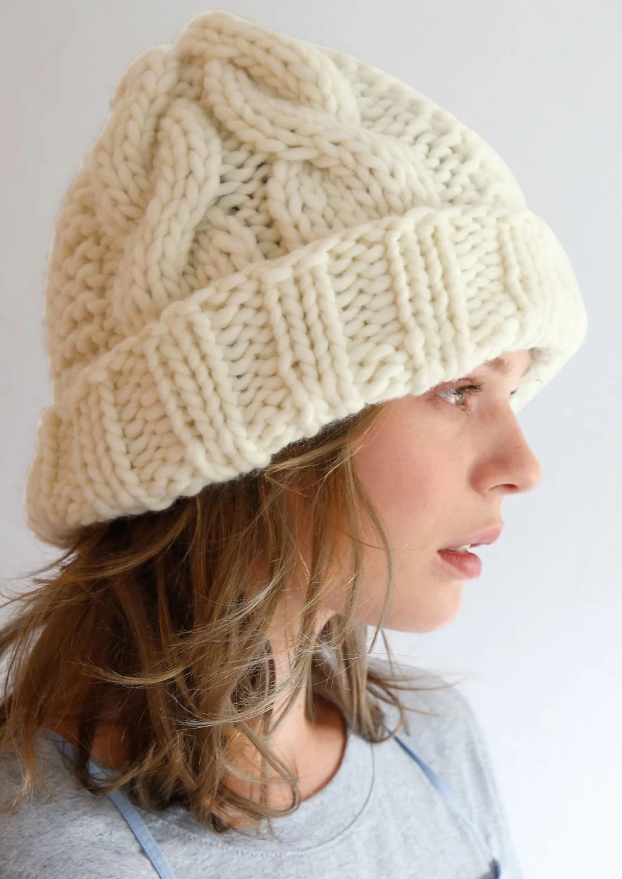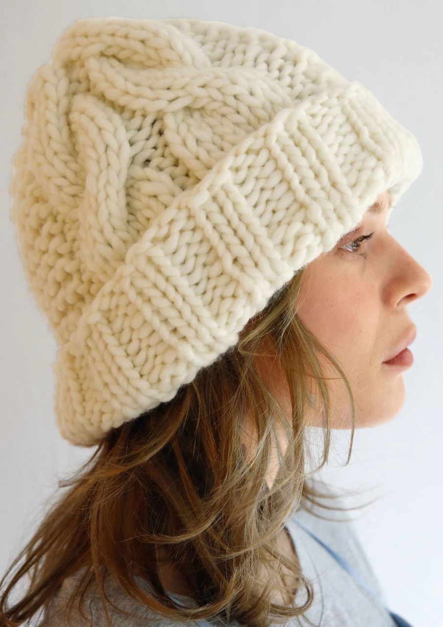 Dicke Mütze mit Zopfmuster