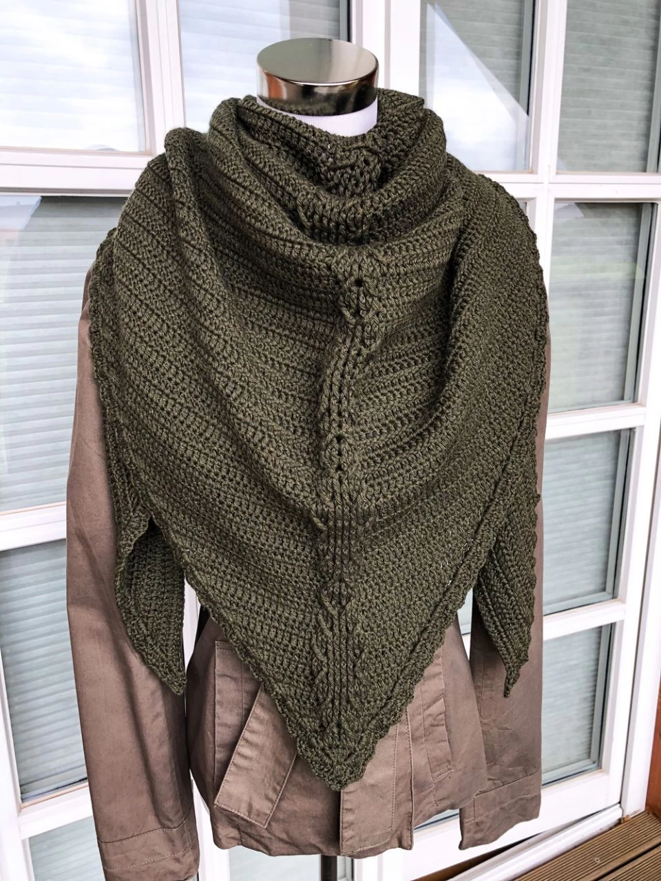 Das Dreieckstuch „Brianna“ ist aus ggh MUSSANTE (37% Wolle / 30% Viskose / 20% Polyamid / 8% Angora / 5% Kaschmir) gehäkelt und hat eine tolle XL-Größe. So kann das Tuch, wie auch in der berühmten TV-SERIE-Outlander, um die Talie gewickelt werden und bietet somit tolles Tragekomfort. Die Schurwollmischung mit Kaschmir und Angora lässt Dich förmlich spüren, wie leicht und sanft dieses Garn auf der Haut liegt. Das Tuch wird von der unteren Spitze in Richtung langer Seite gehäkelt.