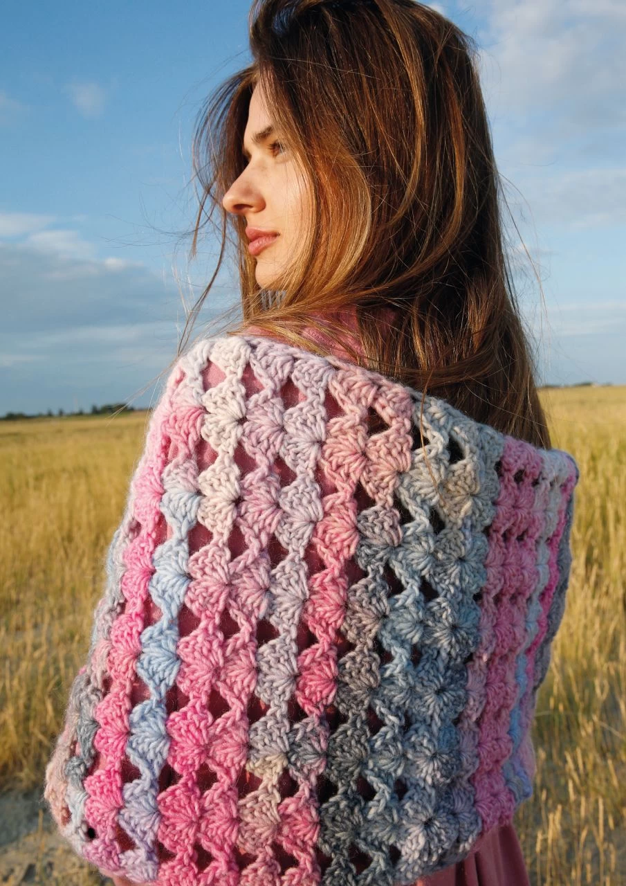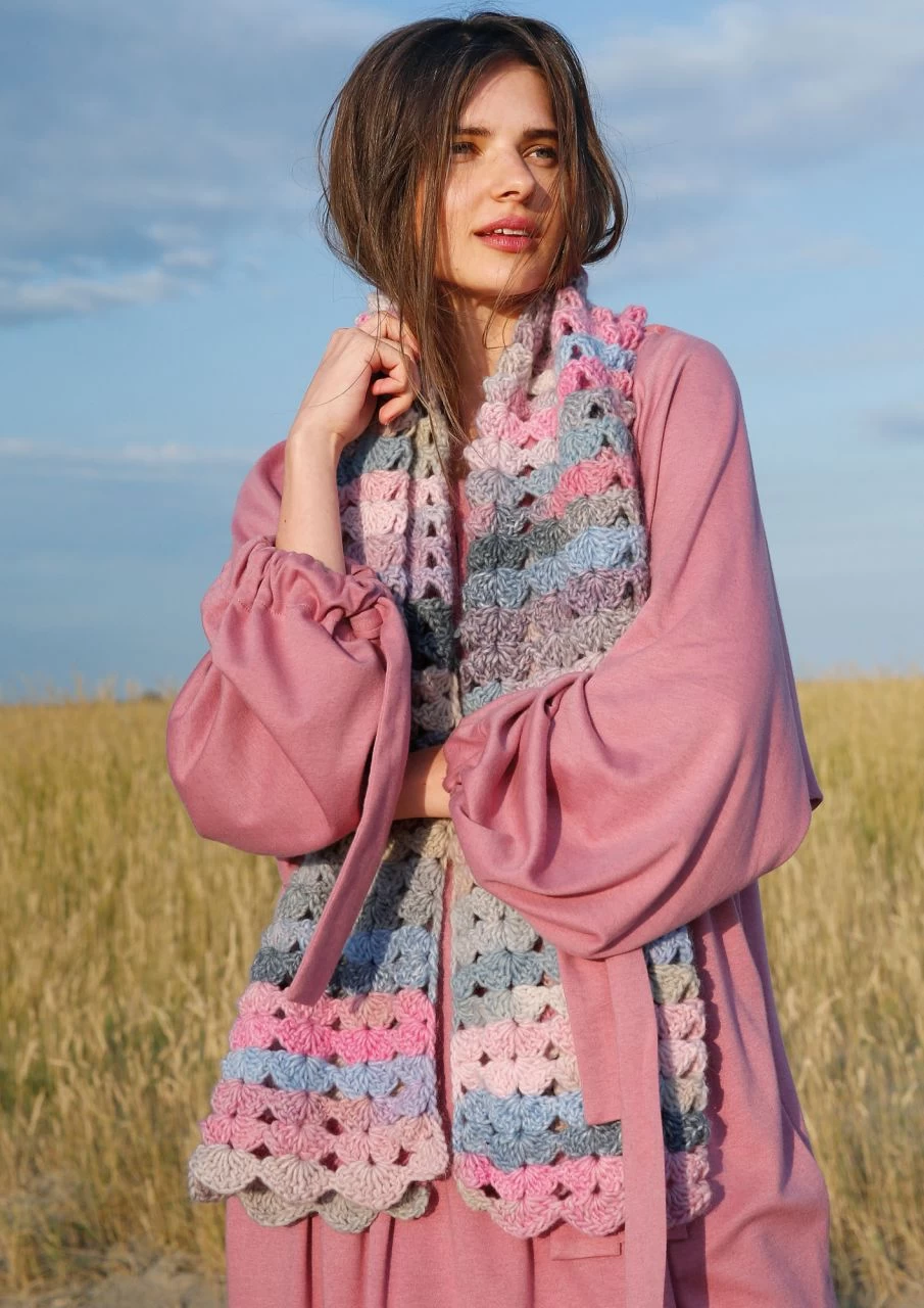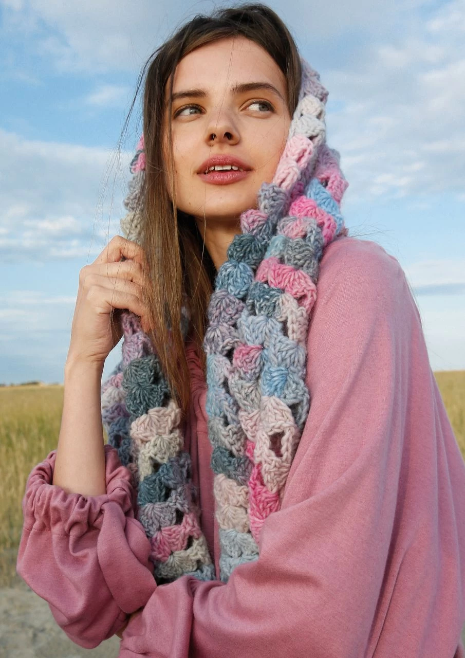 Drei Stäbchen, eine Luftmasche, drei Stäbchen – so formst du eine Muschel. Fortlaufend an- und übereinandergesetzt häkelst du diesen wunderbar weichen Schal aus der ausdrucksstarken Schurwollemischung ggh JOKER. Das Colorgarn macht das Häkeln zur Farbsafari: Welcher Ton kommt jetzt, welche Nuance zeigt sich als nächstes? So entstehen nach und nach abwechslungsreiche Melangen und ein wunderschöner Farbverlauf im Häkelmuster Da gibt es Reihe für Reihe was zu staunen und dein fertiger Schal zeigt ein vielfältiges Farbenspiel. Dazu ist die Wolle angenehm weich und das Muschelmuster verleiht dem Schal eine hübsche Struktur: Muscheln zum Kuscheln, also!