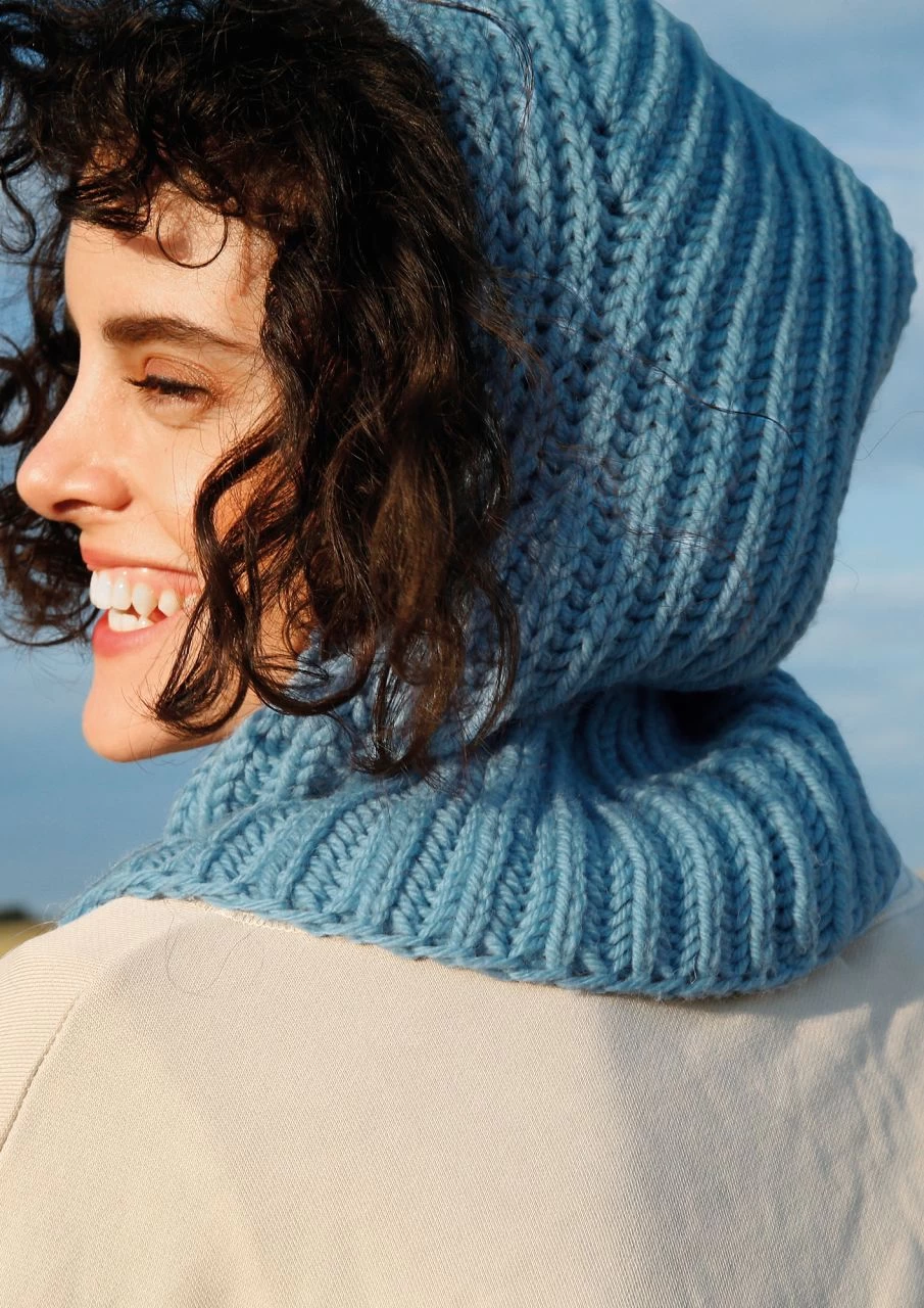 Die verwendete Wolle SPORTLIFE von ggh ist aus 100 % Schurwolle superwash, also pflegeleicht bei 30° C maschinenwaschbar und dabei weich, volumig und angenehm auf der Haut. Die hochwertige Qualität lässt sich gut stricken, erzeugt ein schönes Maschenbild und ist universell einsetzbar. Perfekt für die lässige Schalmütze, denn das Material bietet einerseits einen weichen Griff und hohen Tragekomfort, bleibt aber andererseits auch formbeständig und ist unkompliziert zu pflegen. Dazu bringt es mit seiner klaren Maschendefinition die Rippenstruktur des Patentmusters wunderbar klar zur Geltung.