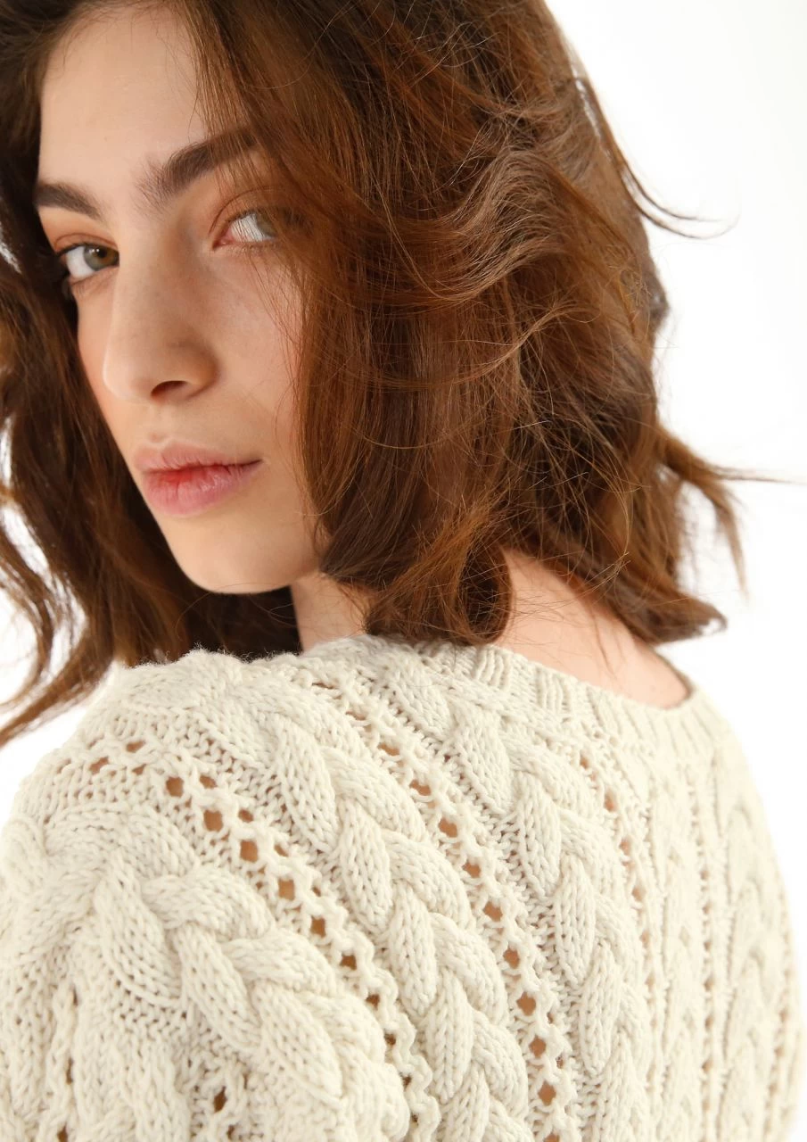 Kurzer Pullover Mit Zopfmuster