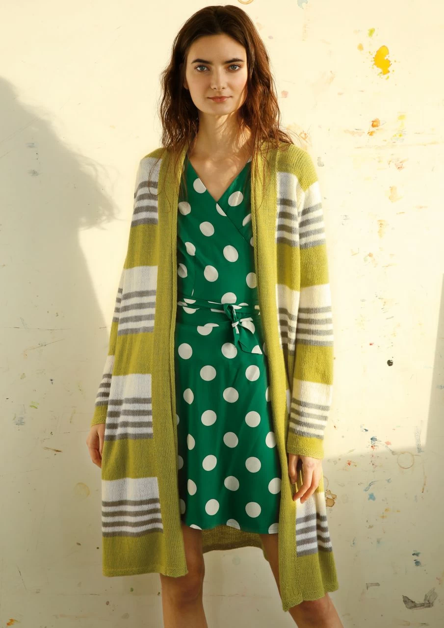 Musst du haben! Die verschlusslose, lässige Jacke hat ein aktuelles Streifenmuster in Dschungelfarben und ist das perfekte Darüber, wenn es mal kühler wird. Sie ist aus ggh LACY, da sorgt der Seidenanteil für fließend geschmeidigen Fall und Merinowolle wärmt angenehm schmeichelsoft. Das plakative Streifenmuster ist zeitlos aktuell und passt zu allen Outfits – im angesagten Mustermix oder ganz schlicht zu Shirt und Jeans kombiniert. Lässige verschlusslose, länger geschnittene Jacken sind sehr vorteilhaft, weil die Seitenteile optisch eine schmale Figur zaubern. Abgesehen davon sind sie super bequem und unkompliziert zu tragen.