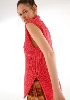 Das melierte Top wird 2-fädig im Rippenmuster gestrickt. Ein besonderes Highlight ist beim Vorderteil eine V-förmig verlaufende, glatt links gestrickte Fläche. Das Top hat vorn einen tiefen V-Ausschnitt und hinten einen schönen rechteckigen Rückenausschnitt. Das figurnah geschnittene Top sieht zu kurzen Shorts, aber auch zu weiten Leinenhosen an warmen Sommertagen fantastisch aus!