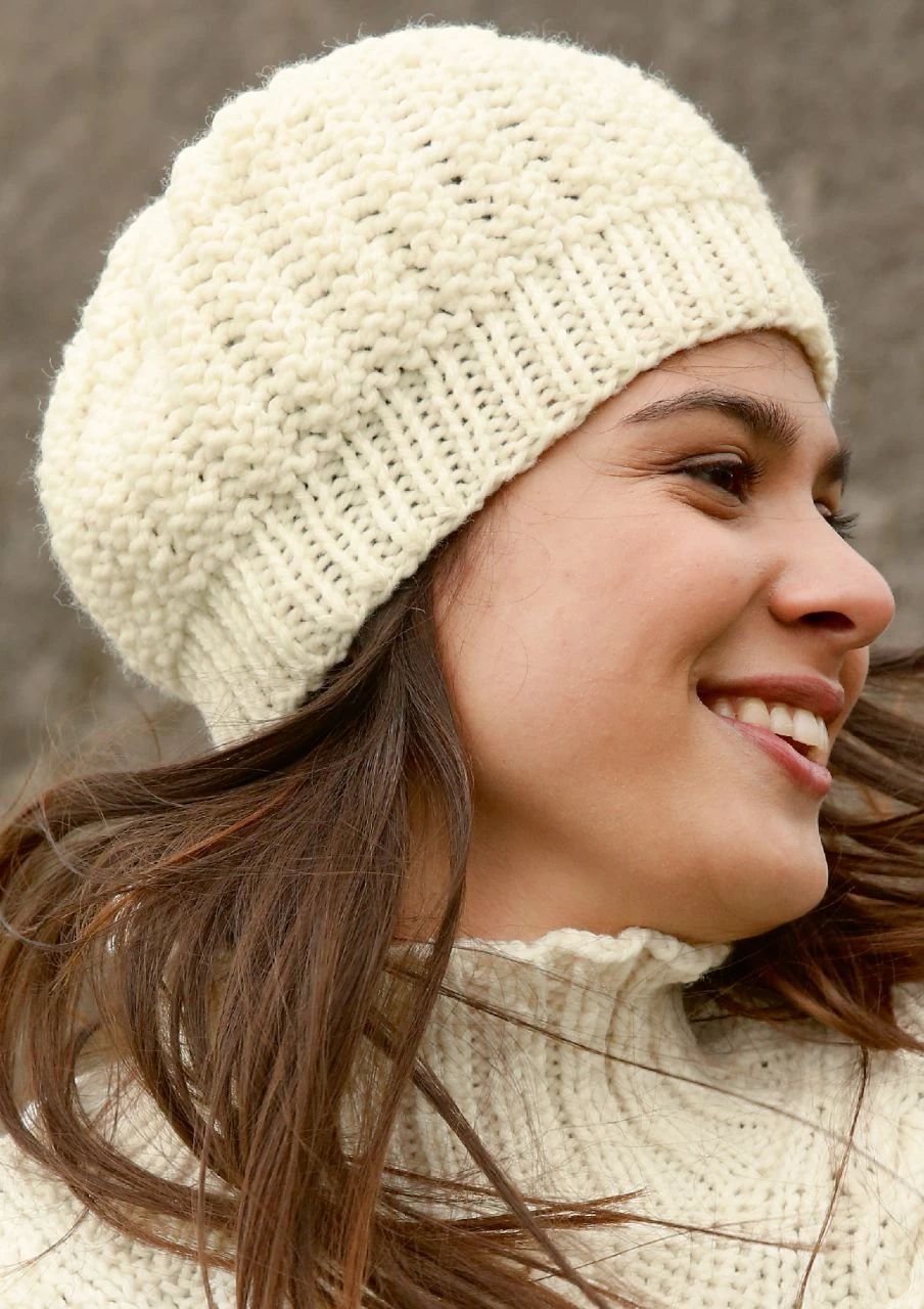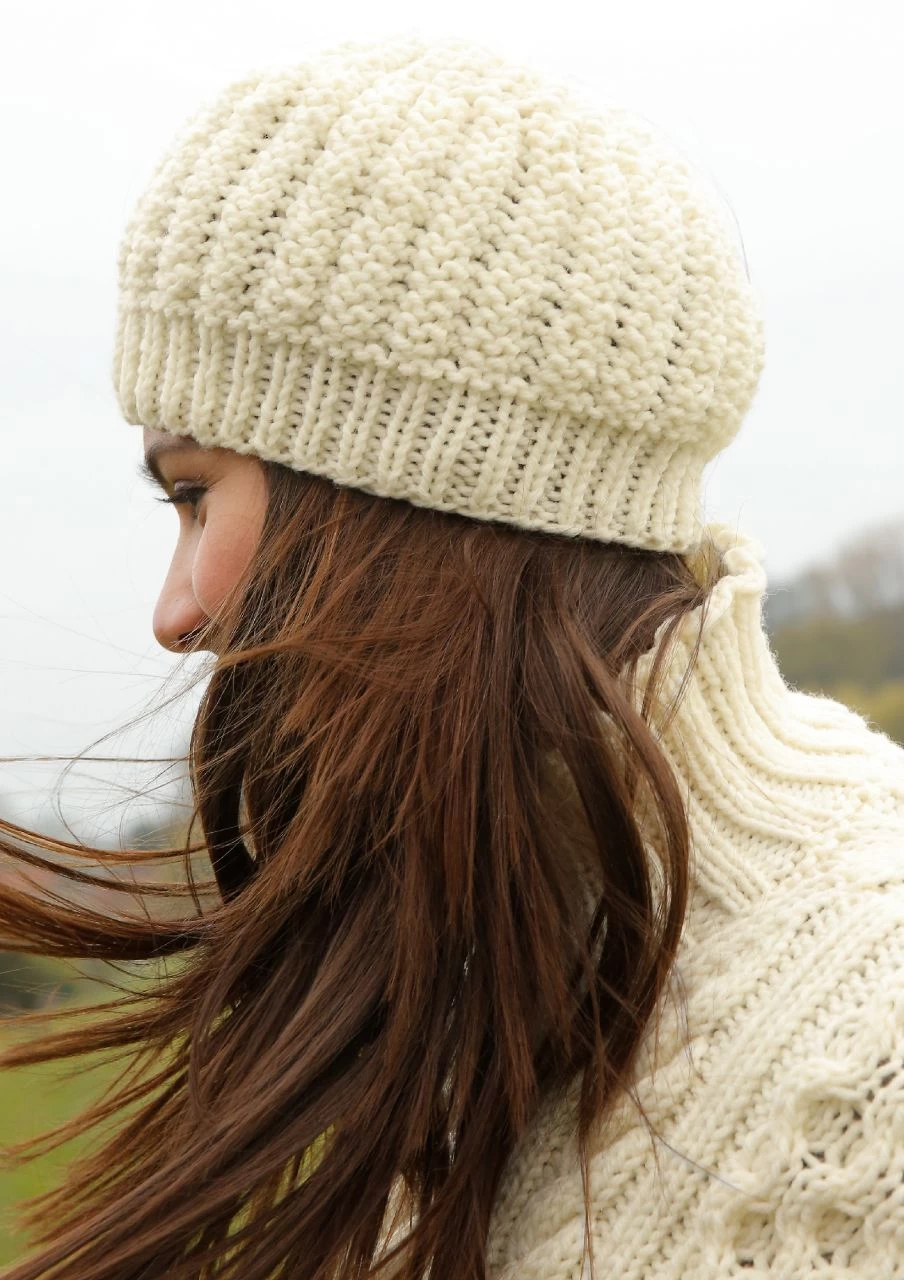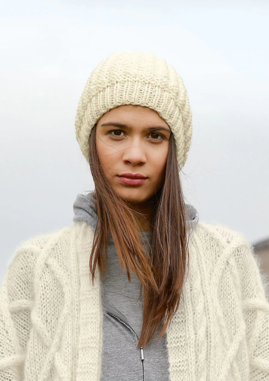 Schnell gestrickt ist die warme Mütze, natürlich nahtlos in Runden.