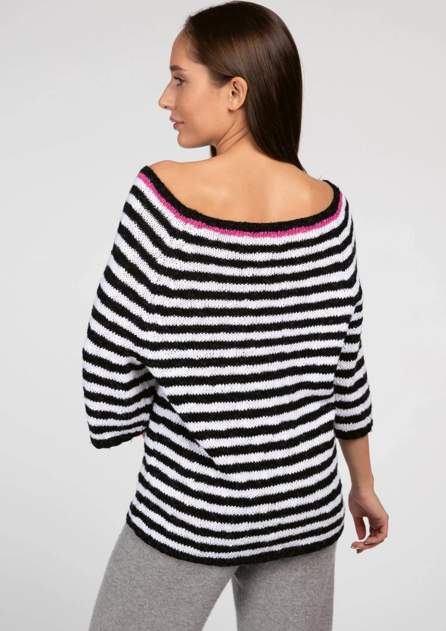 Ringelshirt, Ringelpulli, Ringelpullover, lässiger Pullover mit Dreiviertelärmeln und Raglanpasse, Raglan von unten, gestreiftes Raglan-Shirt, gestreifter Raglanpulli, Ringelpulli mit dreiviertellangen Ärmeln, von unten nach oben gestrickter Raglanpullover, nahtlos gestrickter Streifenpullover, strickleichtes Streifenshirt, strickleichtes Raglanshirt