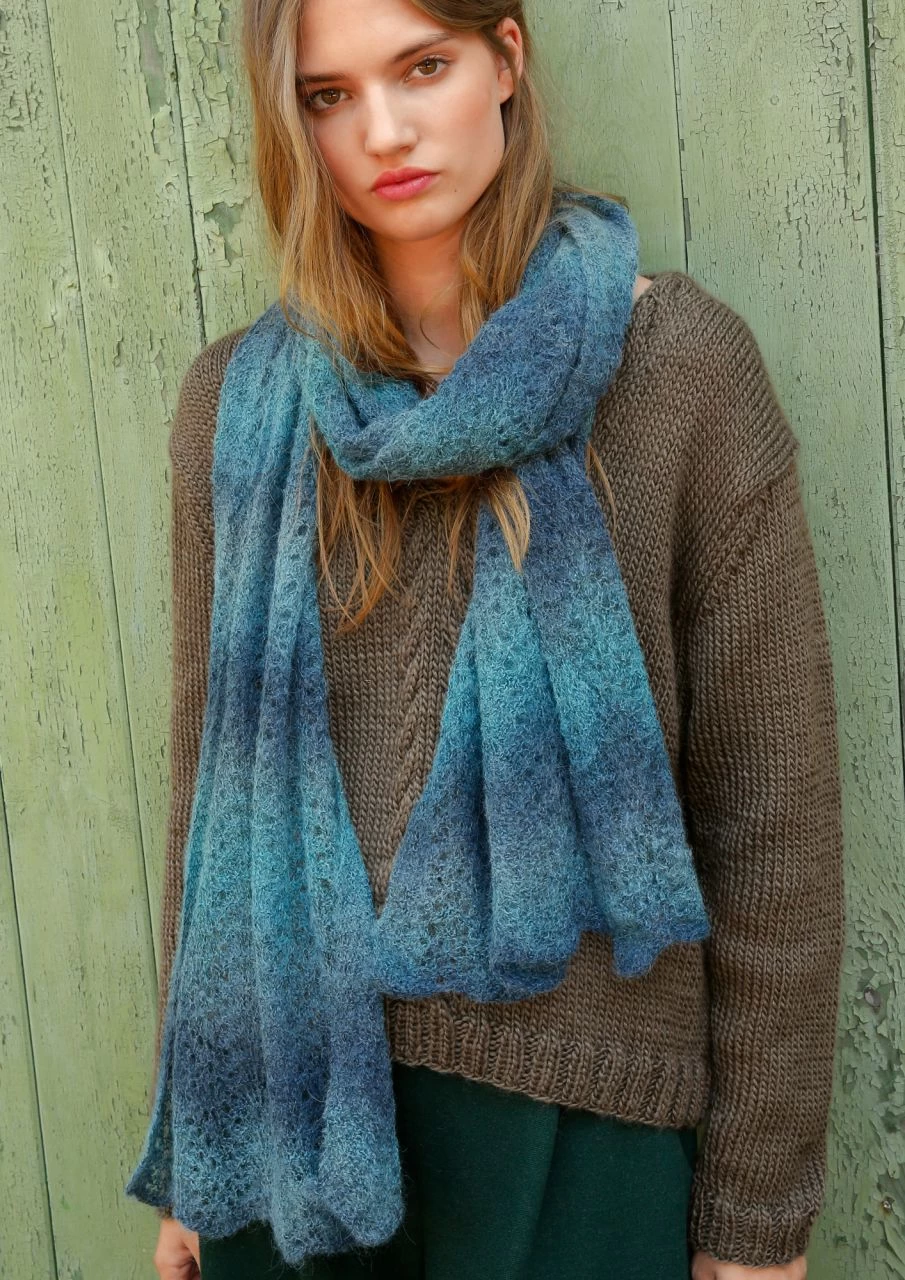 Der Schal wird gestrickt aus dem ggh-Garn MOA (70% Alpaka, 30% Seide).