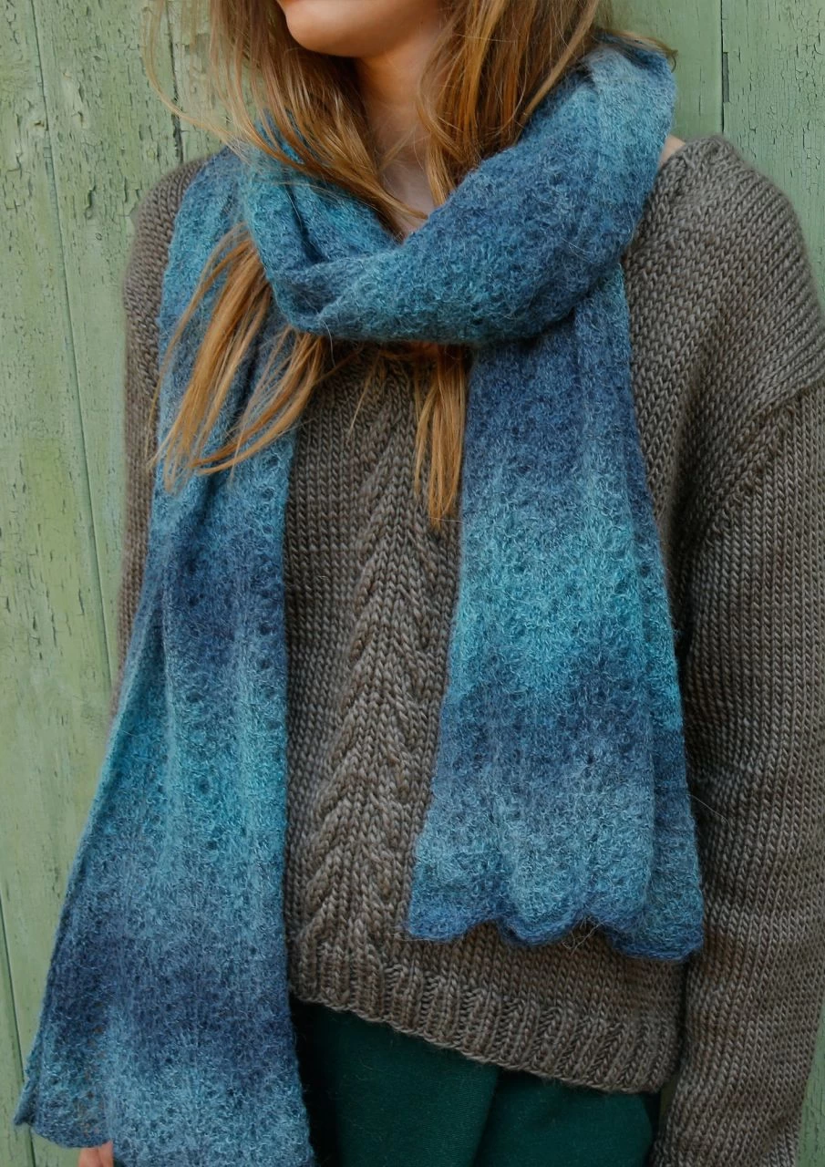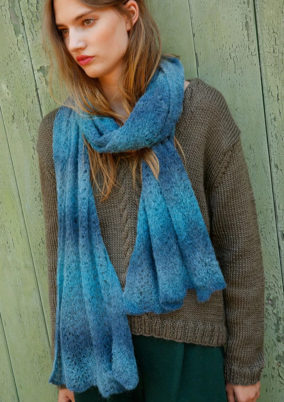 Nur etwa 100 Gramm wiegt der breite Schal aus superweichem Alpaka mit Seide. Das Lochmuster in Wellenform ist nach dem Schema ganz einfach zu stricken ist.