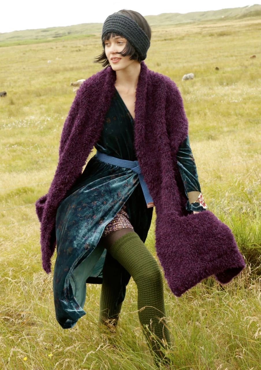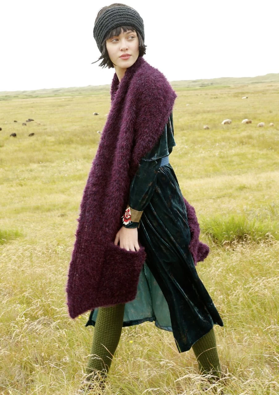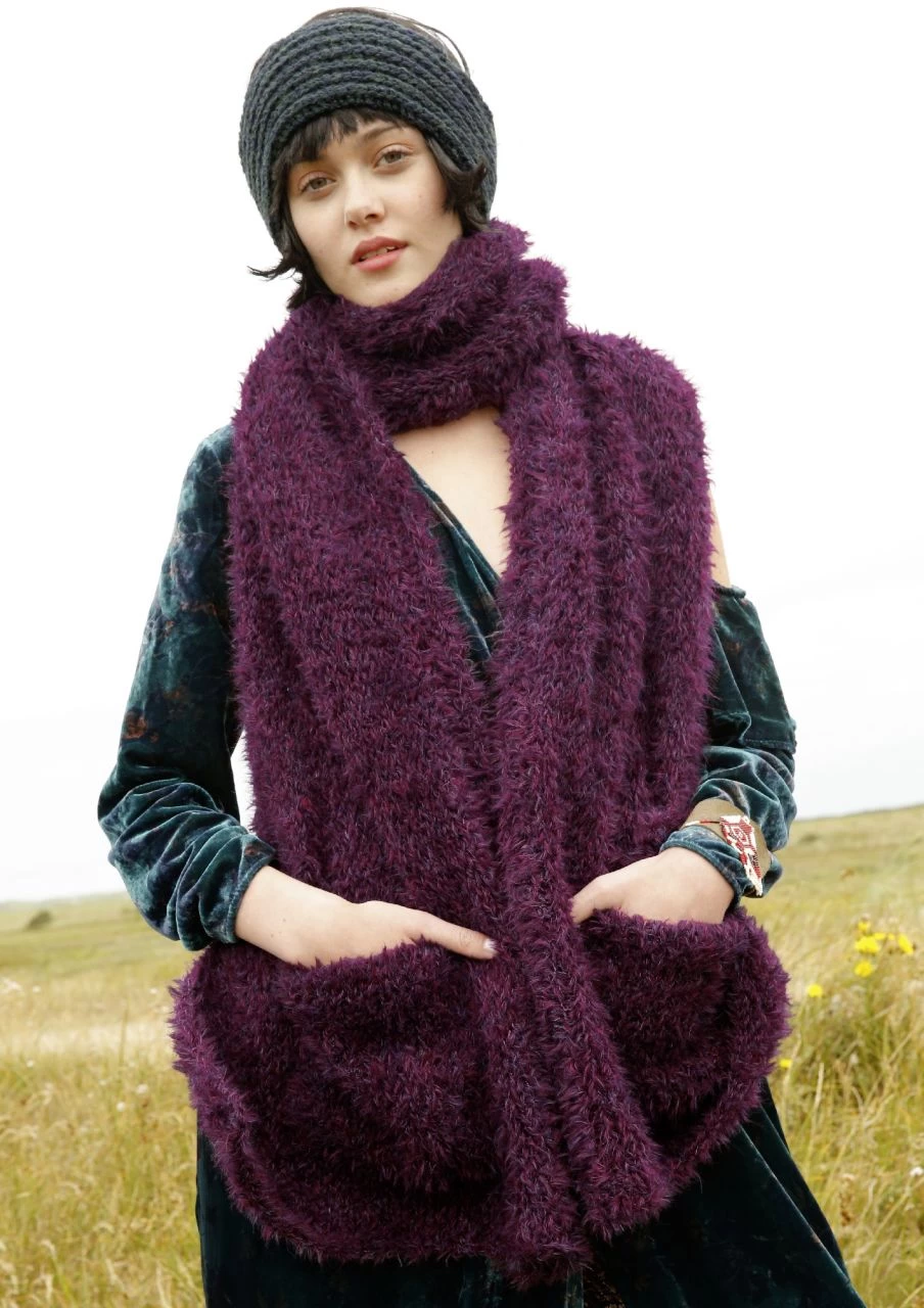 Flauschig weich ist der sehr breite Plüsch-Schal mit aufgesetzten Taschen.