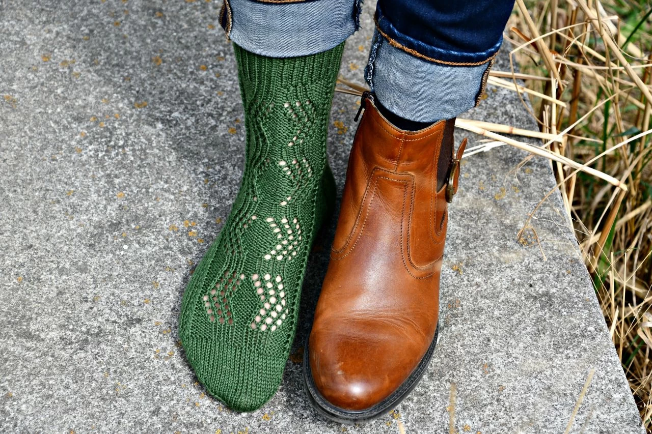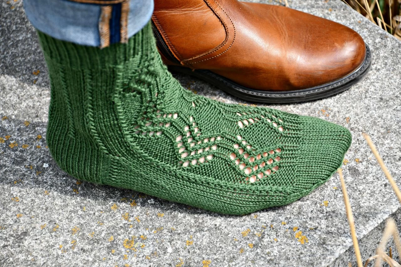 Leichte weiche Socken mit Lochmuster in einem wunderschönem Design von Kristin Joel – ein Muss für jede Socken-Strickerin!