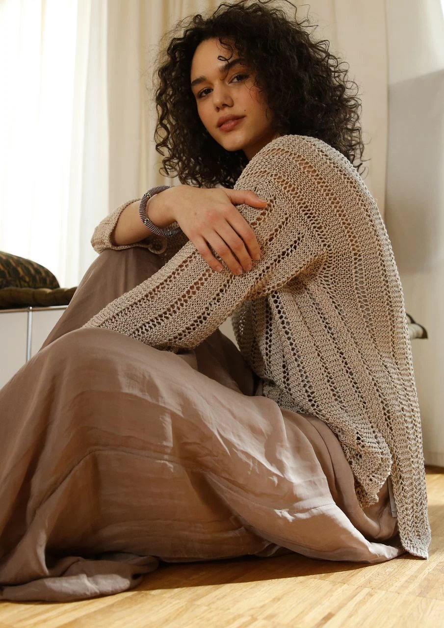 Der Schnitt ist lässig, leger und bequem, das Muster luftig mit kraus rechten Maschen und Lochrippen, das Material absolut edel und elegant – das Strickshirt mit Rundhalsausschnitt, Dreiviertelärmeln und Seitenschlitzen zieht alle Register! Es lässt sich casual aber auch festlich stylen, je nachdem, was du dazu trägst, und wie du dich zurechtmachst. ggh MYSTIK ist ein Garn, das deine Fantasie auf die Probe stellt: Sei nicht irritiert, wenn dein Maschenbild beim Stricken des lässigen Shirts noch nicht perfekt ist, das schimmernde Baumwoll-Viskose-Garn zieht sich erst nach der ersten Wäsche zurecht und wirkt dann wunderschön gleichmäßig. Versprochen!